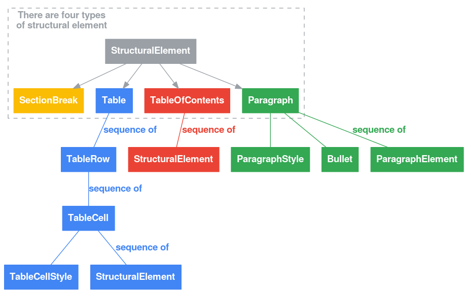 正文内容基本上是只是一个序列 StructuralElement 对象。每个StructuralElement对象通过其内容元素的个性化,如图所示,下图中: