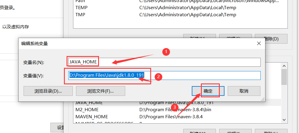 路径:刚才解压的目录D:\Program Files\Java\jdk1.8.0_191