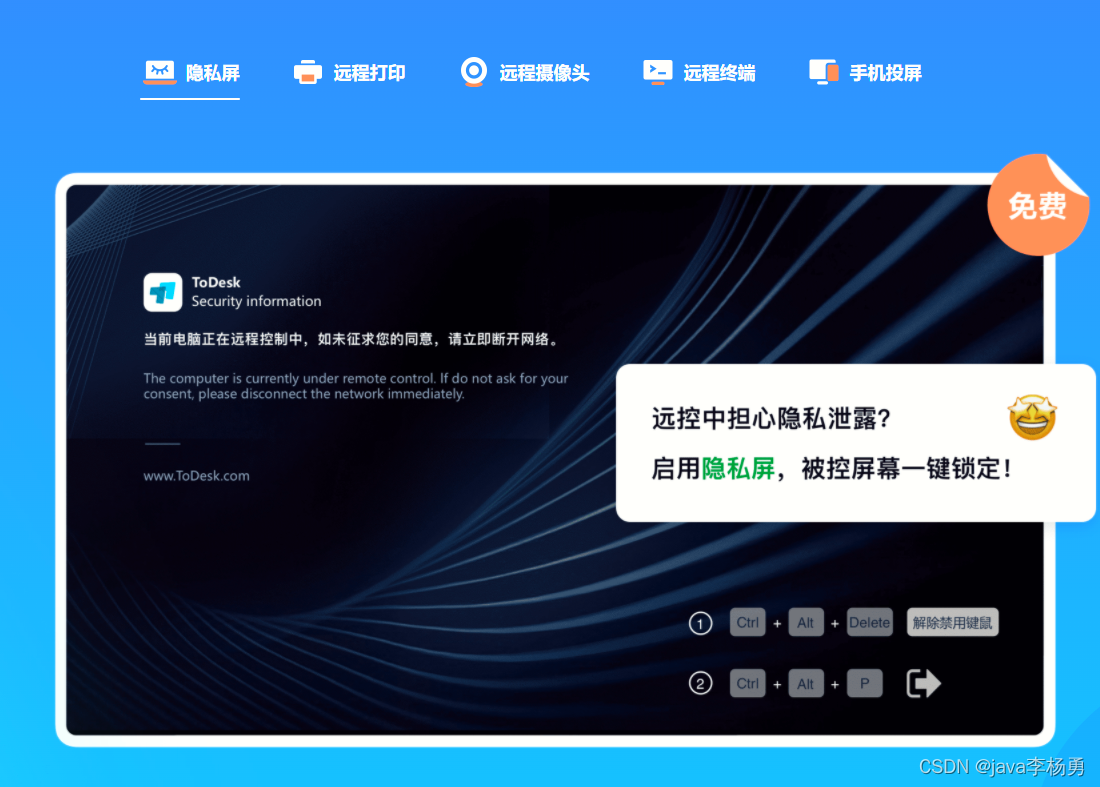 优点比较多!我就不一一介绍了!比如隐私屏保护隐私、远程打印文件、远程摄像头以及远程终端文件传输和支持手机投屏等实用功能。