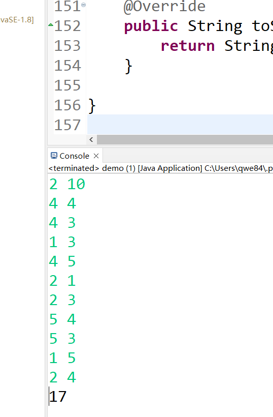 输出要求为一个整数,表示至少需要多少步的青蛙跳。例如: