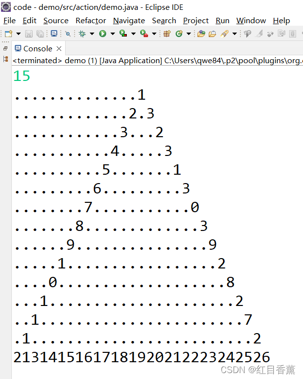 本题目要求你在控制台输出一个由数字组成的等腰三角形。