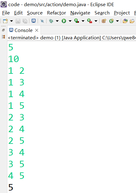 以下m行每行的格式为:两个整数a,b,用空格分开 (1<=a,b<=n) 表示第a个人与第b个人认识。
