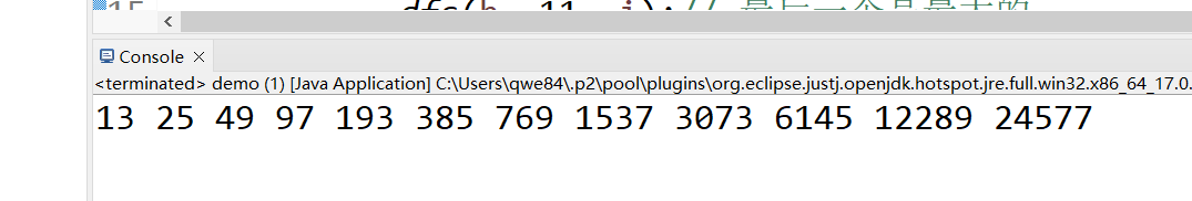 答案:【13 25 49 97 193 385 769 1537 3073 6145 12289 24577 】