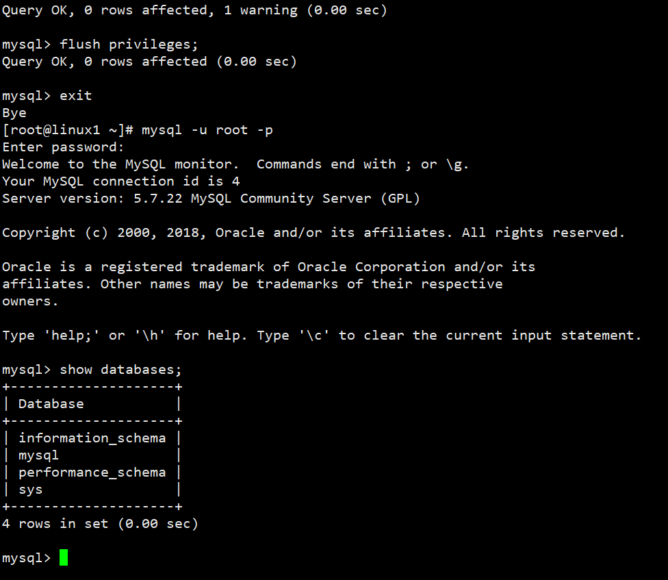exit退出后重新登录,你发现可以用你修改的密码登录了。