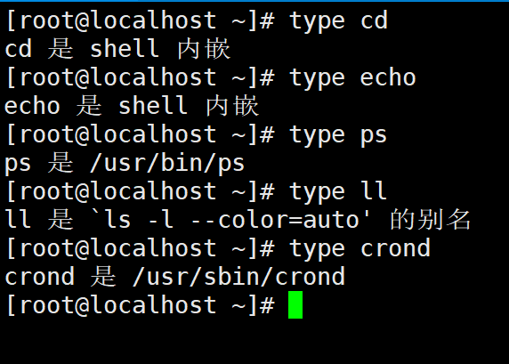 通过type可以查看咱们平时使用的命令是否是【shell】内嵌命令,如果是代表执行效率就高。