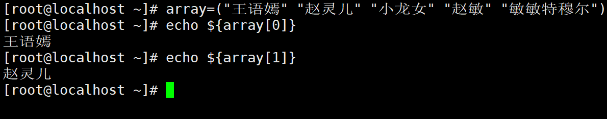 数组操作就一定要加上作用域【{}】,使用方法与传统语法类似,下标都是从【0】开始
