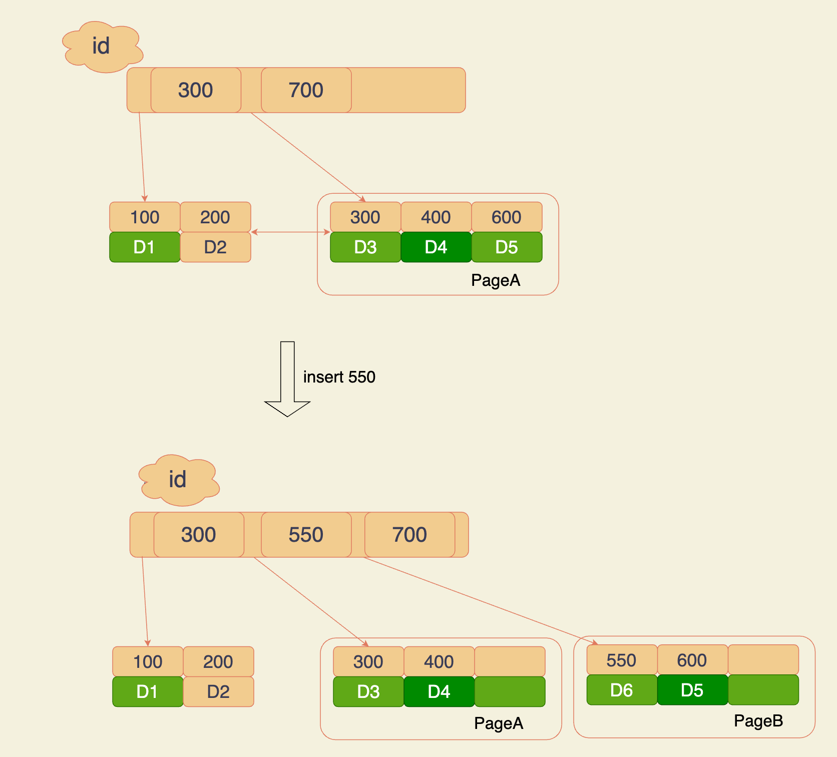 假设pageA已满,此时再插入一行数据,会怎样呢?