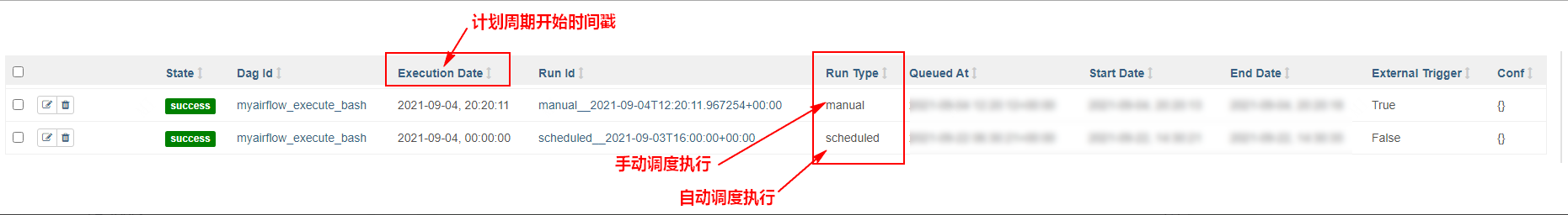 在Airflow中,调度程序会根据DAG文件中指定的“start_date”和“schedule_interval”来运行DAG。特别需要注意的是Airflow计划程序在计划时间段的末尾触发执行DAG,而不是在开始时刻触发DAG,例如: