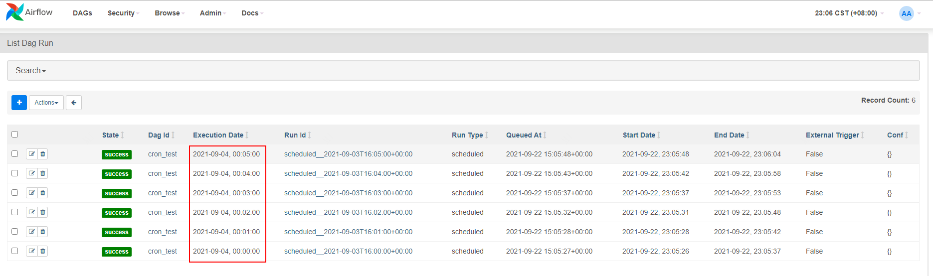 'start_date': datetime(2021, 9, 4), # 第一次开始执行的时间,为 UTC 时间
