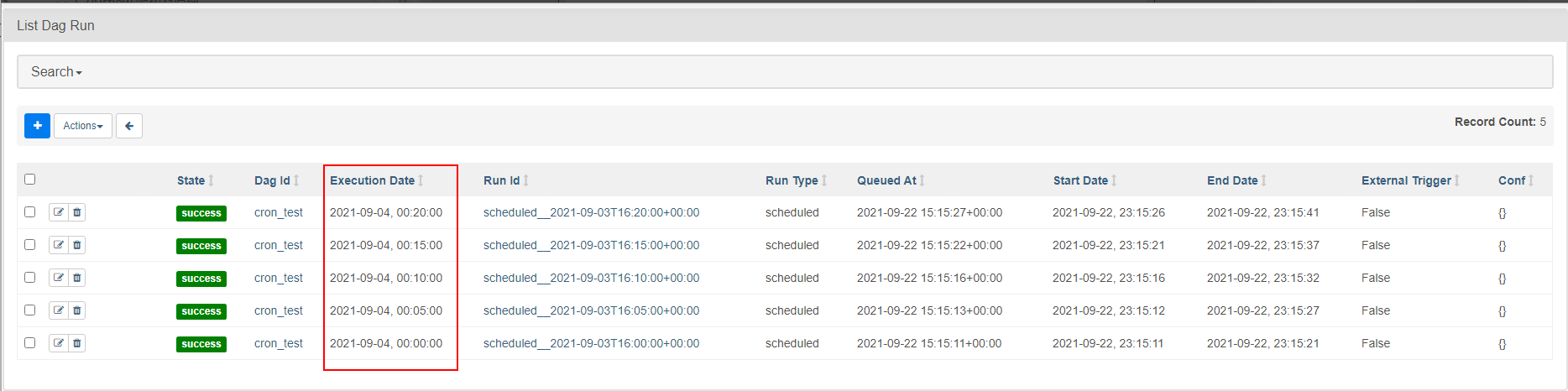 schedule_interval = timedelta(minutes=5) # 使用python timedelta 设置调度周期,可以配置天、周、小时、分钟、秒、毫秒