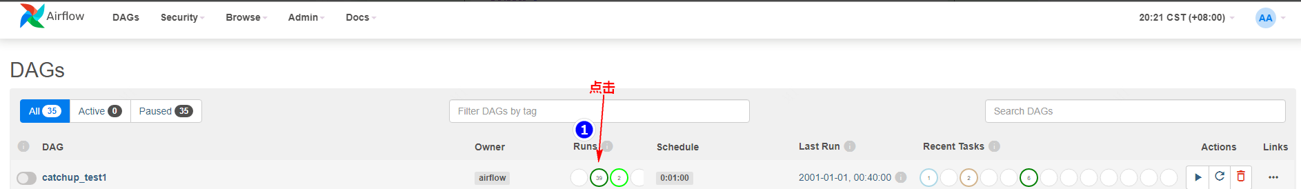 上传python配置文件到$AIRFLOW_HOME/dags下,重启airflow,DAG执行调度如下: