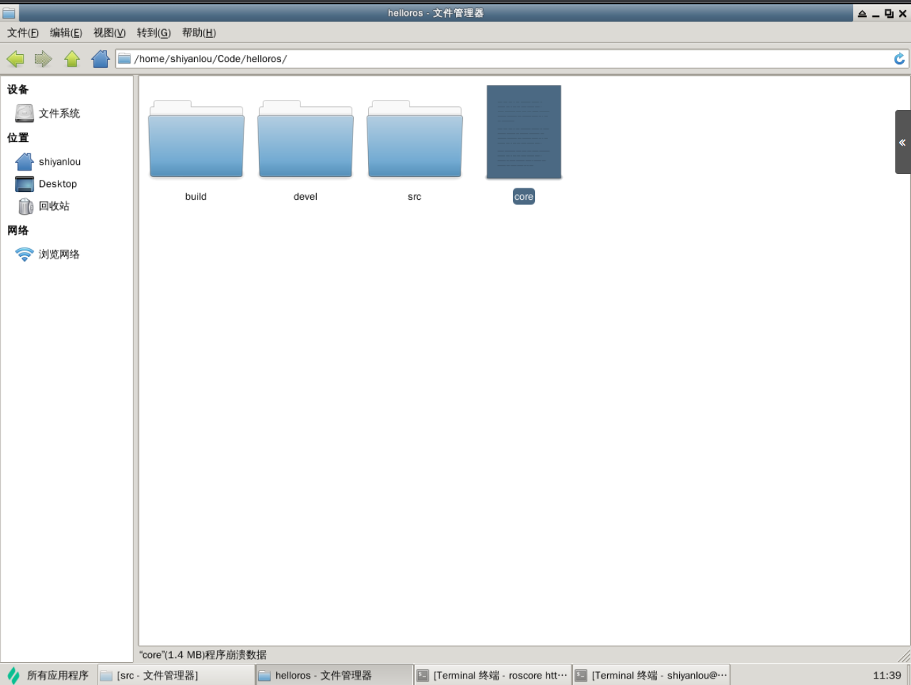 -- Build files have been written to: /home/shiyanlou/Code/helloros/build