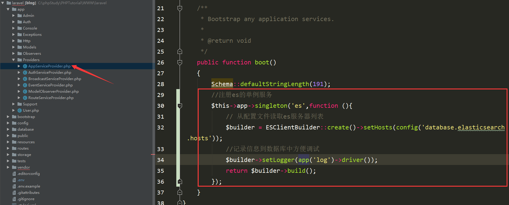 laravel 链接Elasticsearch ;链接只需要配置es的服务器与IP地址就好了