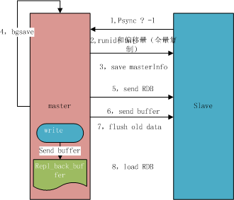 - Redis 内部会发出一个同步命令,刚开始是 Psync 命令,Psync ? -1表示要求 master 主机同步数据