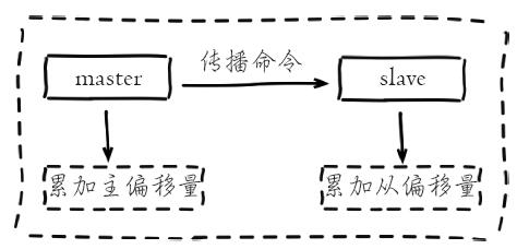参与复制的主从节点都会维护自身复制偏移量。主节点(master)在处理完写入命令后,会把命令的字节长度做累加记录,统计信息会在info replication 中的master_repl_offset指标中