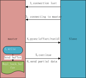 从节点将offset发送给主节点后,主节点根据offset和缓冲区大小决定能否执行部分复制