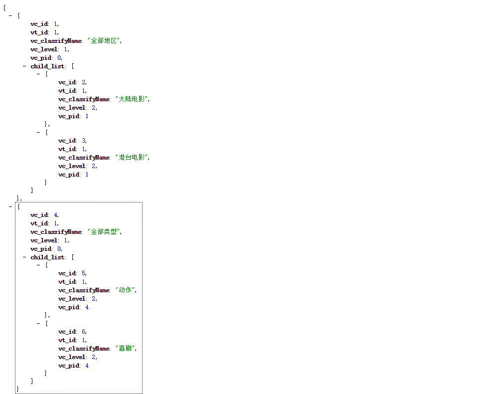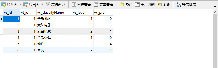 vt_id是视频分类的id,vc_level是等级,vc_pid对应的是vc_id