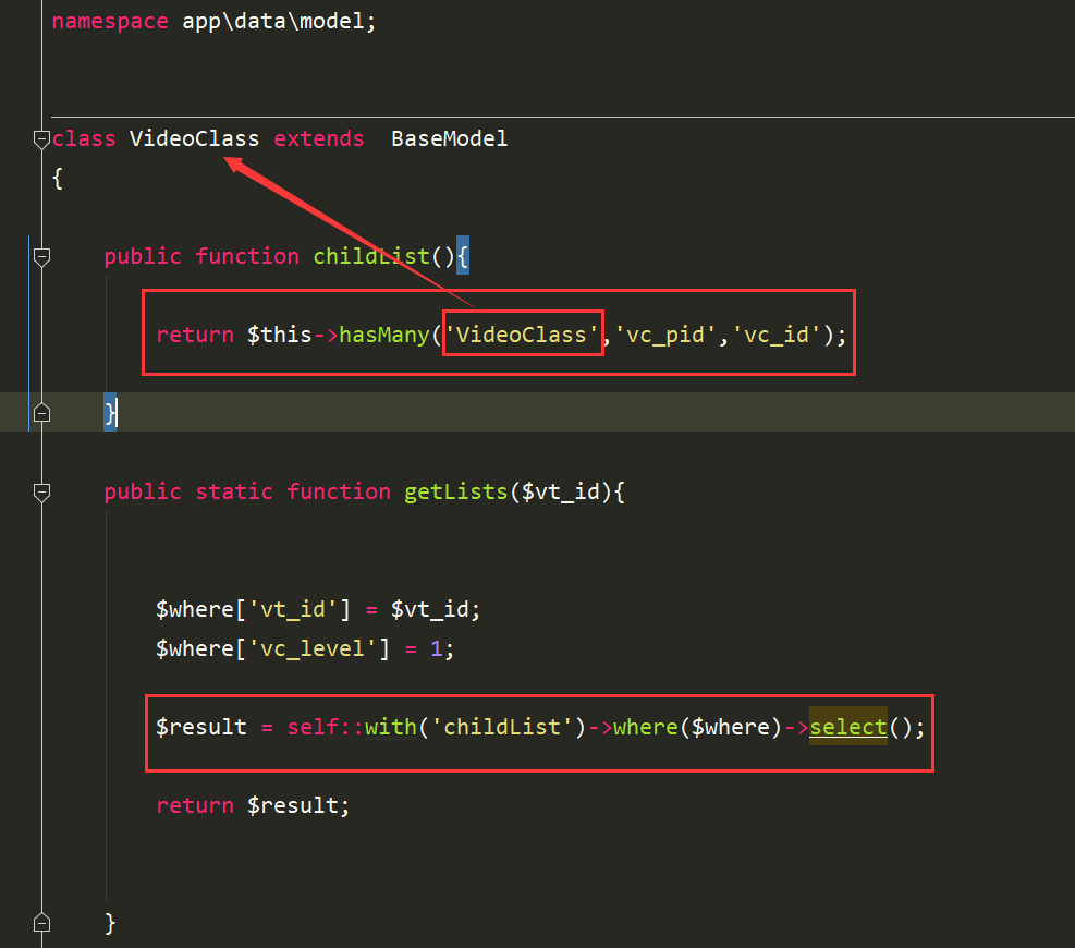 【TP5】在同一模型里边使用hasMany进行数据的组装
