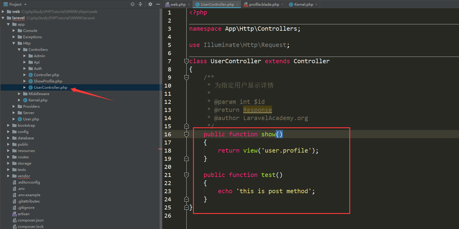 在控制器配置俩个方法,一个显示模板,一个表单提交