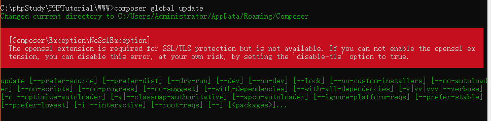 这是第一次更新,第一次没有更新成功是因为openssl的扩展没有开,这个扩展可以直接在phpstudy直接设置打开