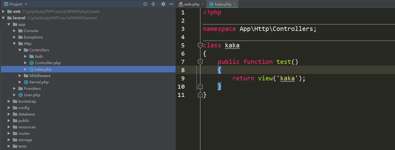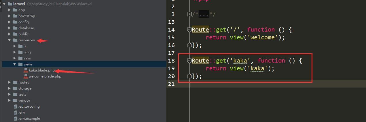 laravel的视图是在resources下的view,并且使用的blade模板,在创建视图时是需要添加blade的,如果不添加里边的变量都会不识别,这个你们可以测试一下