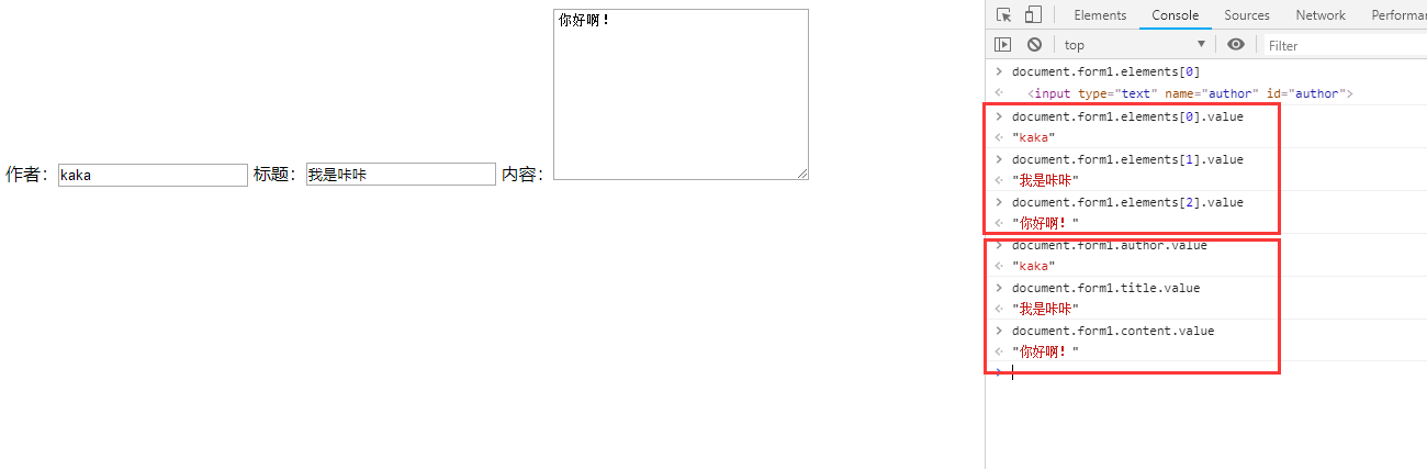 第一种方式,我们可以直接使用表单的id+elements[0]来获取第一个元素的值