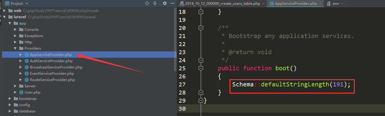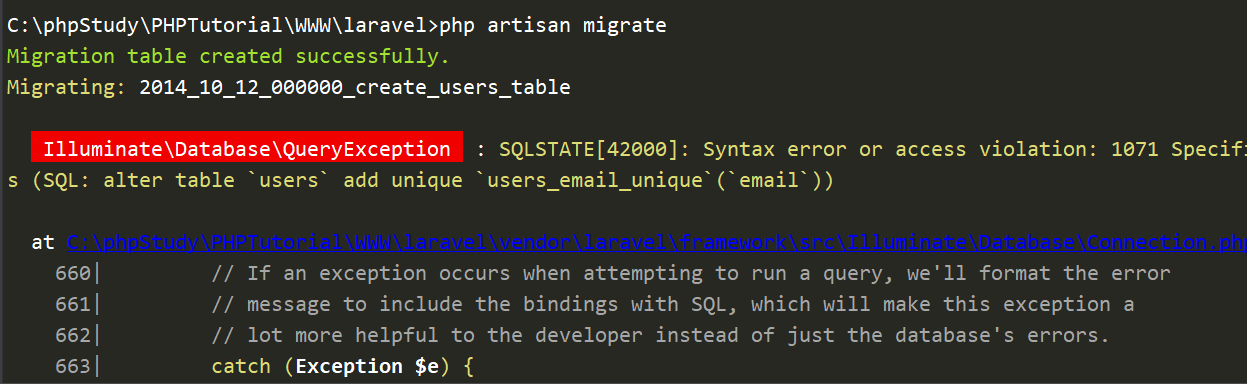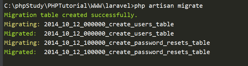 使用命令:php artisan migtate进行数据库迁移