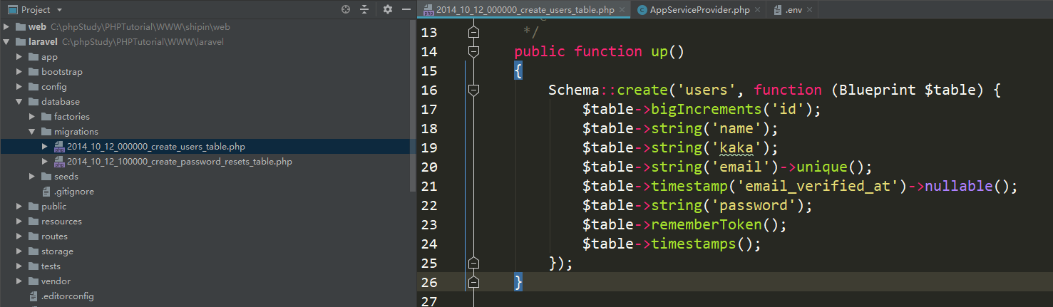 【laravel】@16 数据库迁移