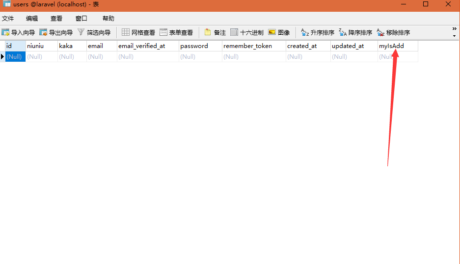 比如我们对这个users数据库要进行添加一个字段myIsAdd这个字段