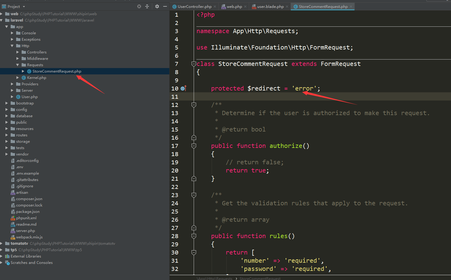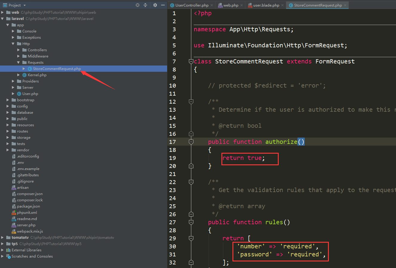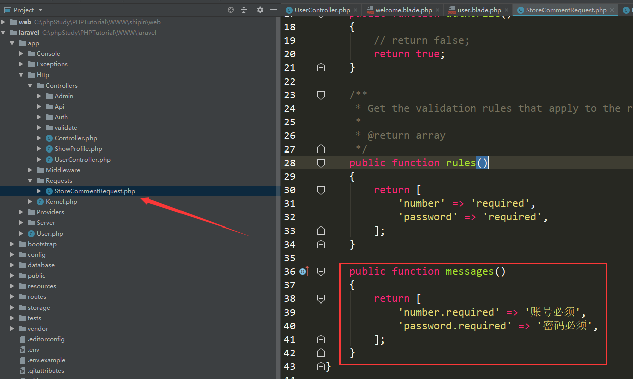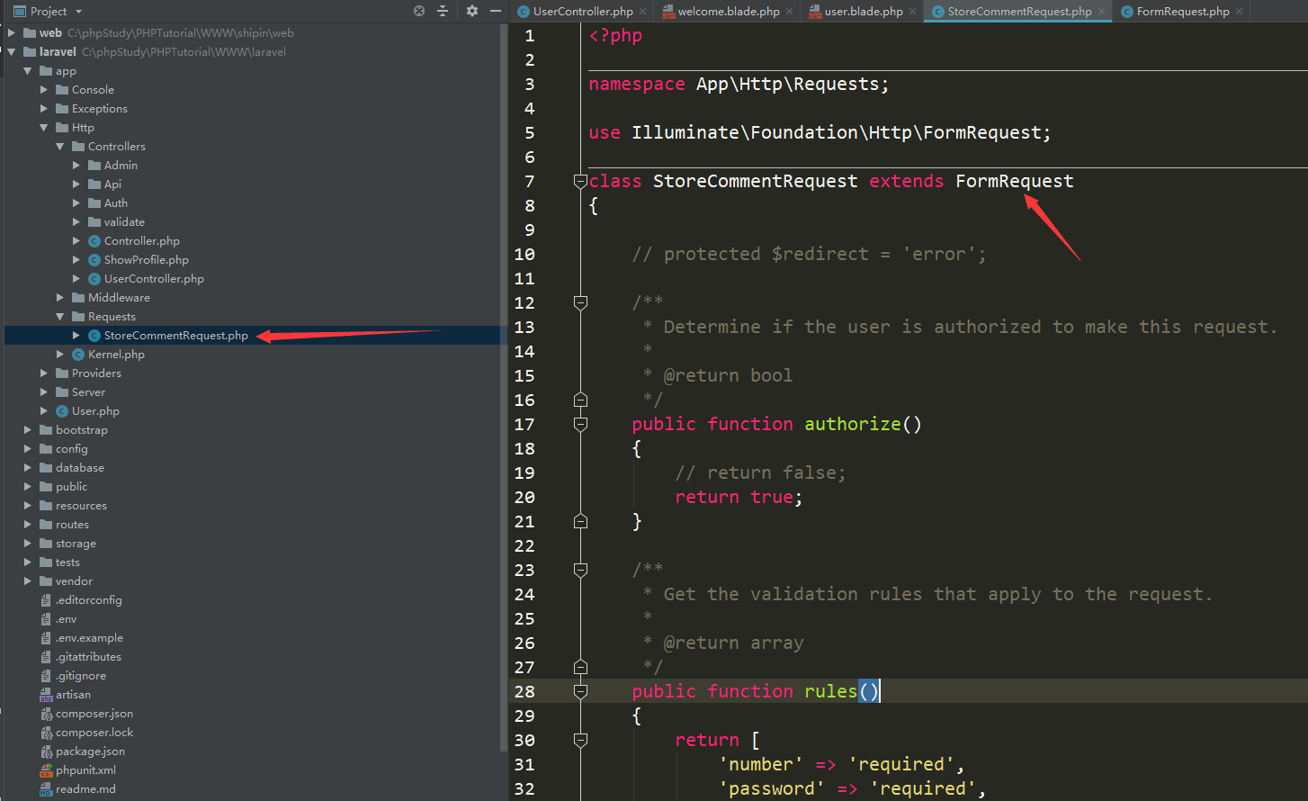 第一步先使用命令 php artisan make:request StoreCommentRequst创建这个文件