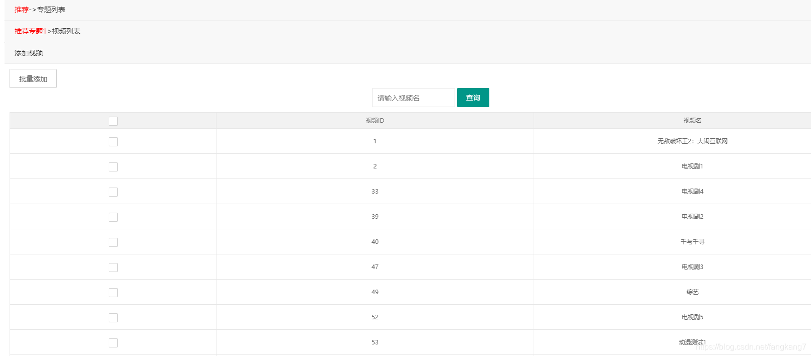 * 批量给专题添加视频