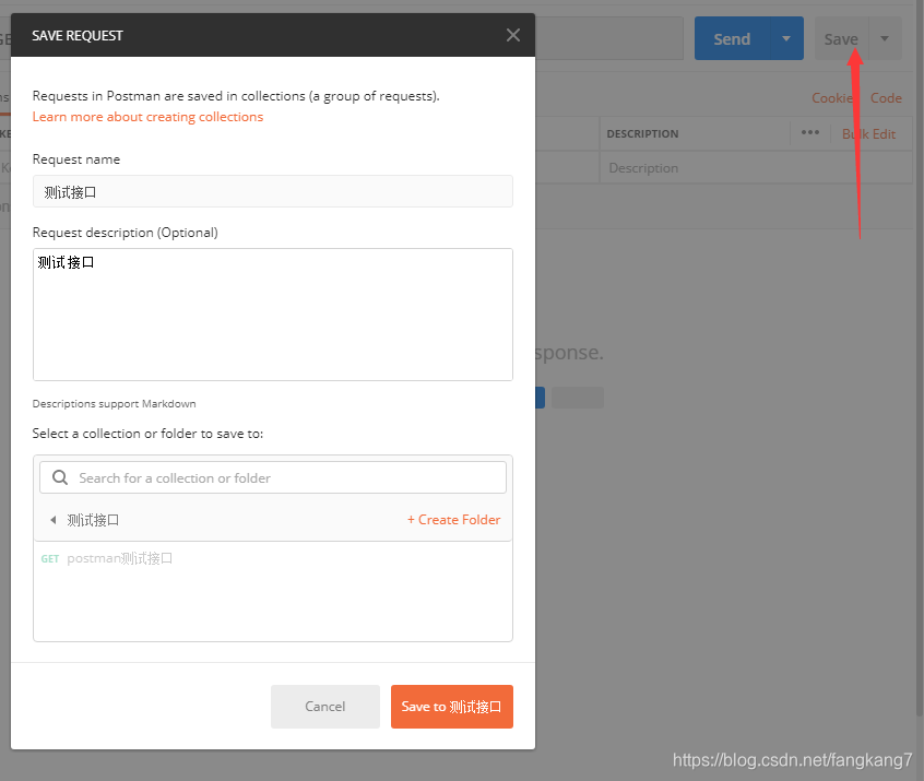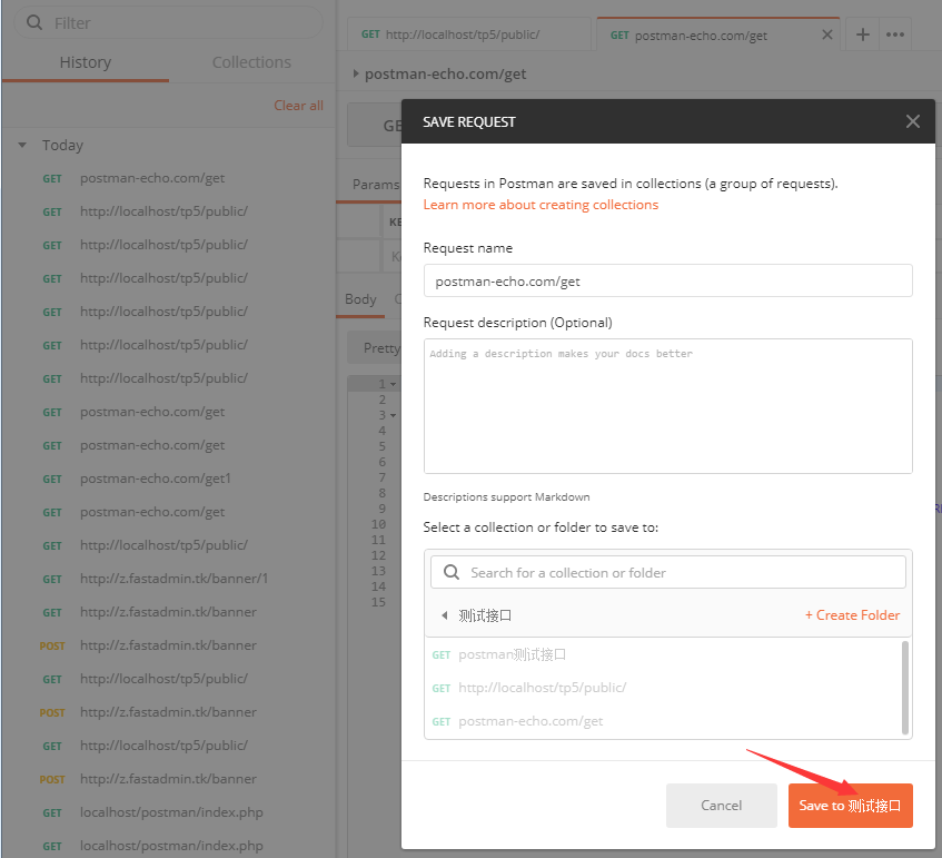 - 保存请求至一个已经存在的集合,或者创建一个新集合,将请求保存至这个创建的新集合。