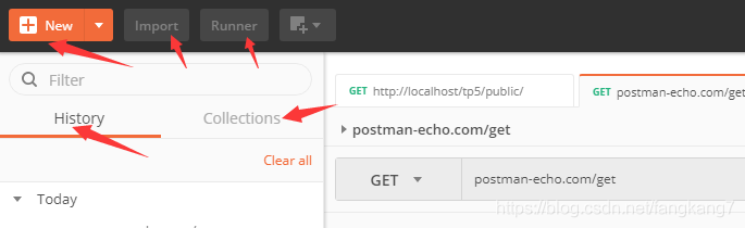 new:提供创建请求、集合、环境、文档、mock服务器和监控器的入口;