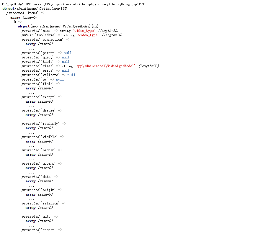 这样的查询最后返回的数据是对象,我们在前台模板输出的时候是没办法输出的,所以我们需要将其转为数组即可( toArray() )