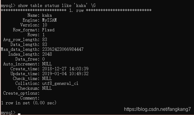 【Mysql】表的信息解释(show table status like ‘kaka’ \G)
