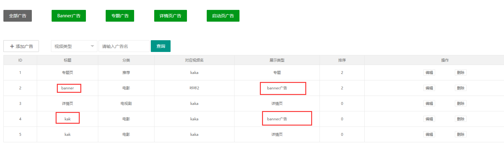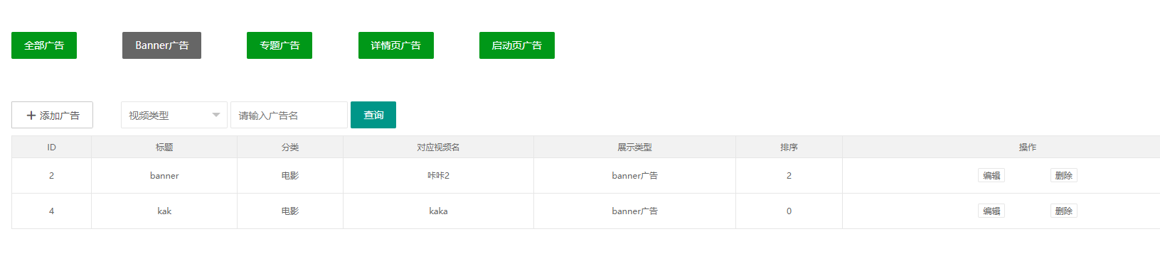 点击其他的广告分类,带上各自在数据库的标识,然候使用参数传递给后台