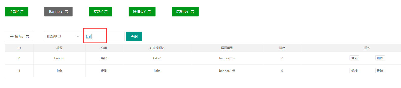 需求:点击广告分类,在点击查询,需要查询本分类下的广告