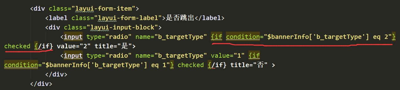 单选框这个就更简单了,首先我们给复选框一个固定的值,我们只需要用查出来的数据跟这个value的值做判断即可