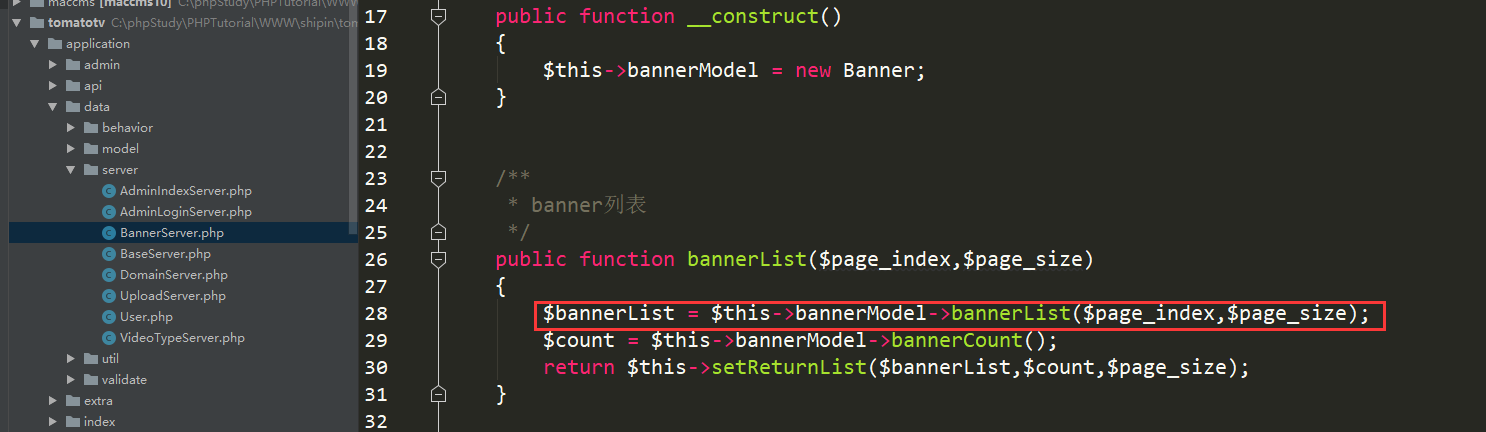 在bannerServer里边需要查询banner列表的数据,数据查询是在模型里边操作的,所以还需要去一趟banner模型那里一趟