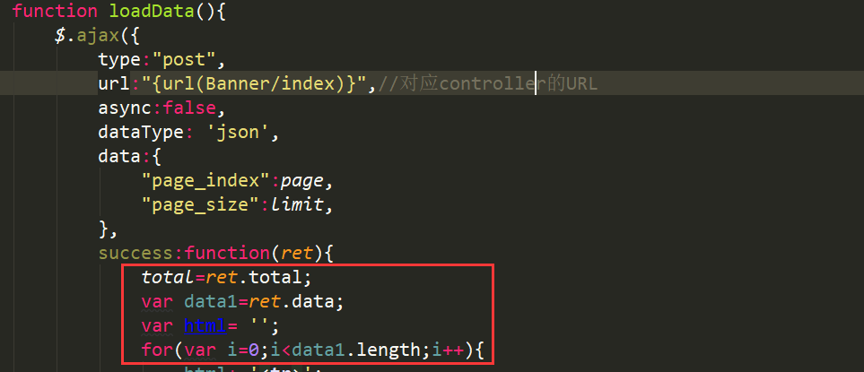 我们在js里边可以看出,ajax像后端发起请求的时候带了俩个参数,一个是页数,一个是页面显示数据