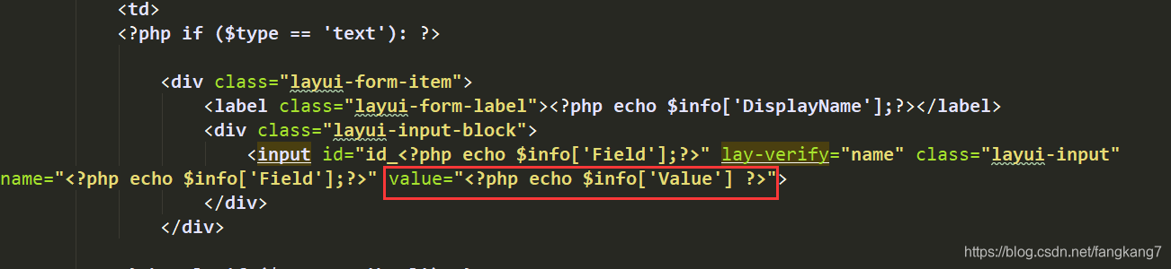 我们的这个dn_info自定义类型是text,所以就会将这个input输出 ,不管修改还是添加都是需要name值的,所以name值也会是动态的,我们组装的数据里边也有