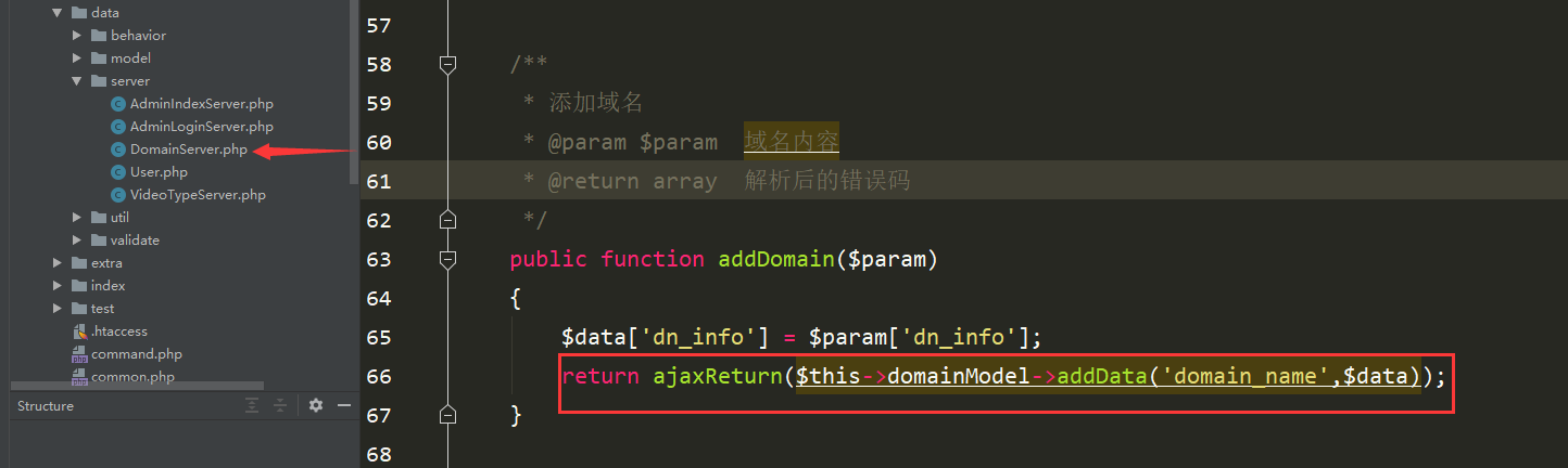 第二步:server层接受到参数,使用模型基类的方法做添加