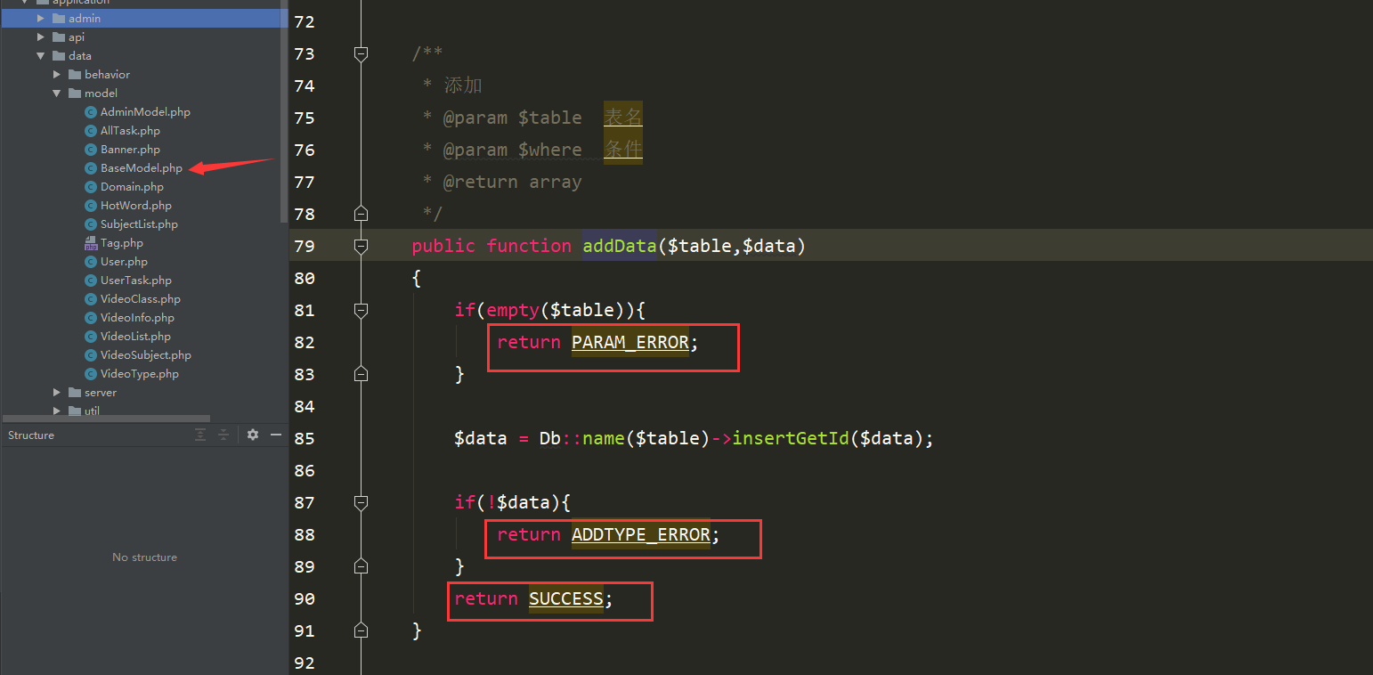 第三步:server层需要将模型基类返回的错误码解析并返回给控制器