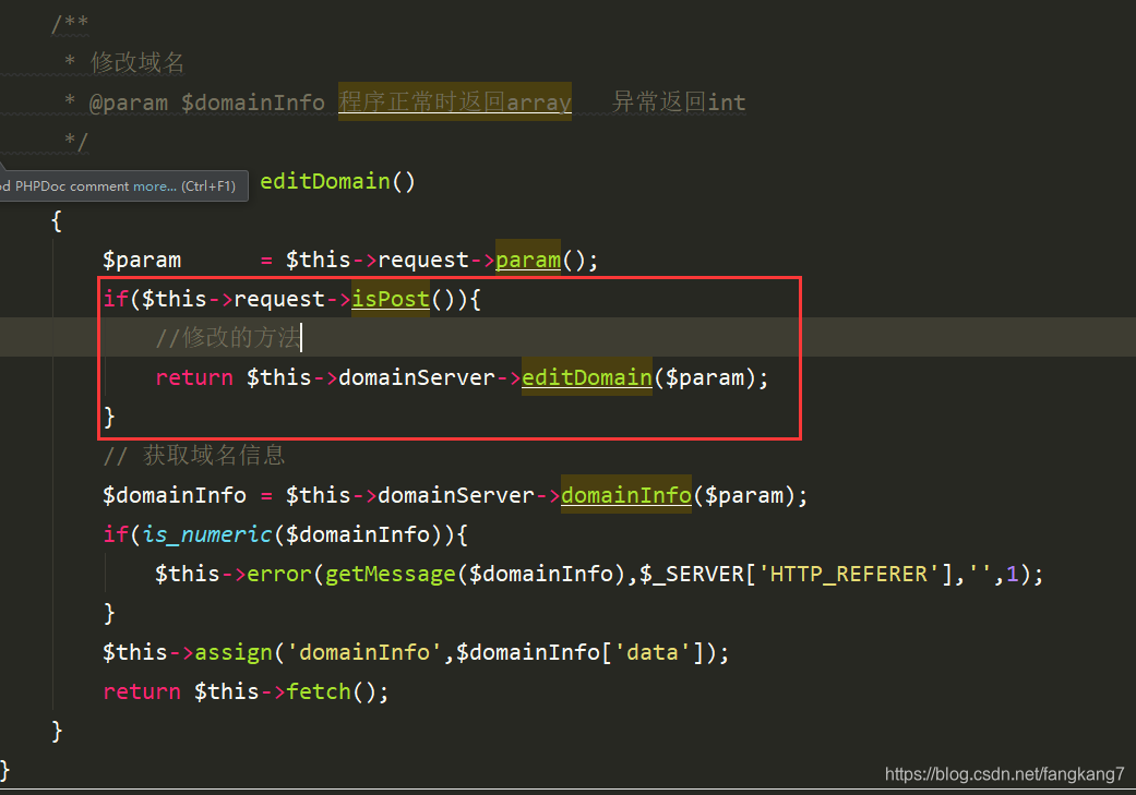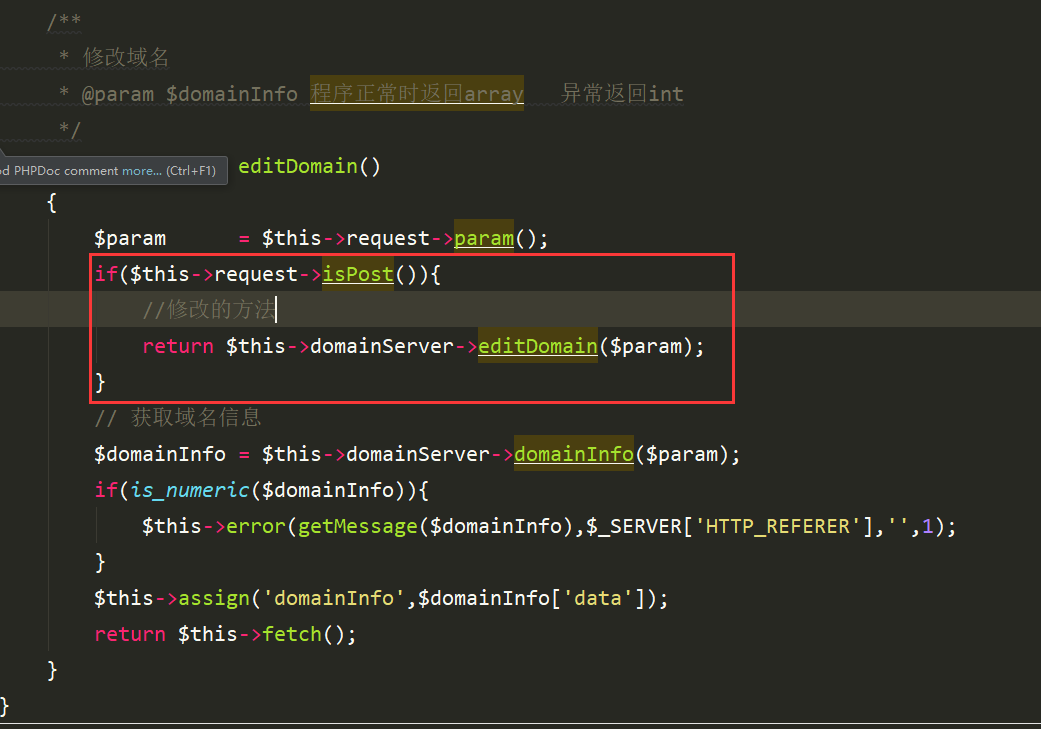 这里只是判断是否post请求,修改数据,使用的是domainServer类里边的方法