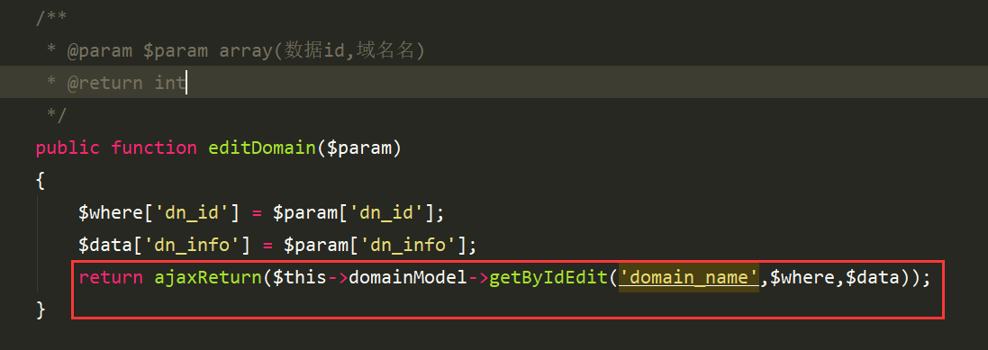 在domainServer类里边处理修改数据,在调用模型基类里边的修改方法