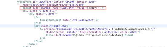 2.3 在登录页面里面,通过隐藏域来获取刚刚传入的csrf,这样当用户提交form表单的时候,这里的csrf就会一起被提交到后台的代码。