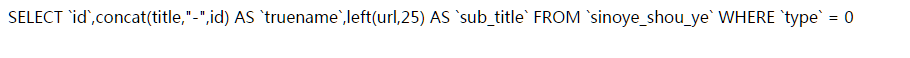 1。concat将title和id连接作为truename新的字段,left从url字段左侧开始截取25个字符,同理right也可。