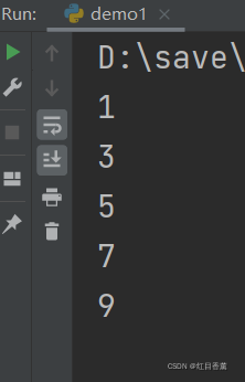 执行上面的代码可以看到,打印的不再是1~10,而是1,3,5,7,9。