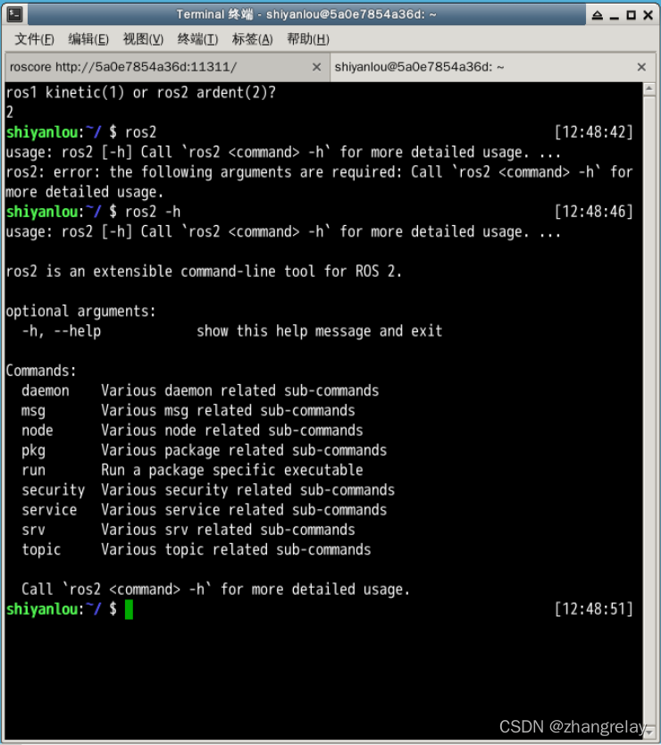 shiyanlou:~/ $ ros2                                                  [12:48:42]