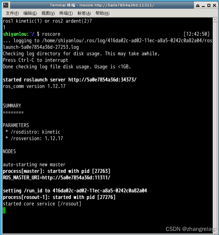 shiyanlou:~/ $ roscore                                               [12:42:50]